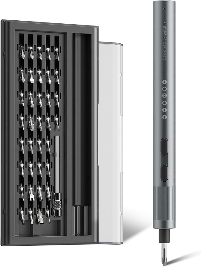 - Screwdriver Set is 42-in-1:his set includes 37 self-magnetic bits made from durable S2 hardened steel, perfect for various repair tasks. It comprises a Mini Electric Screwdriver, Clip Storage Case, 37 Precision Bits, USB Type-C Charging Cable, and User Manual, providing all you need for your DIY projects.