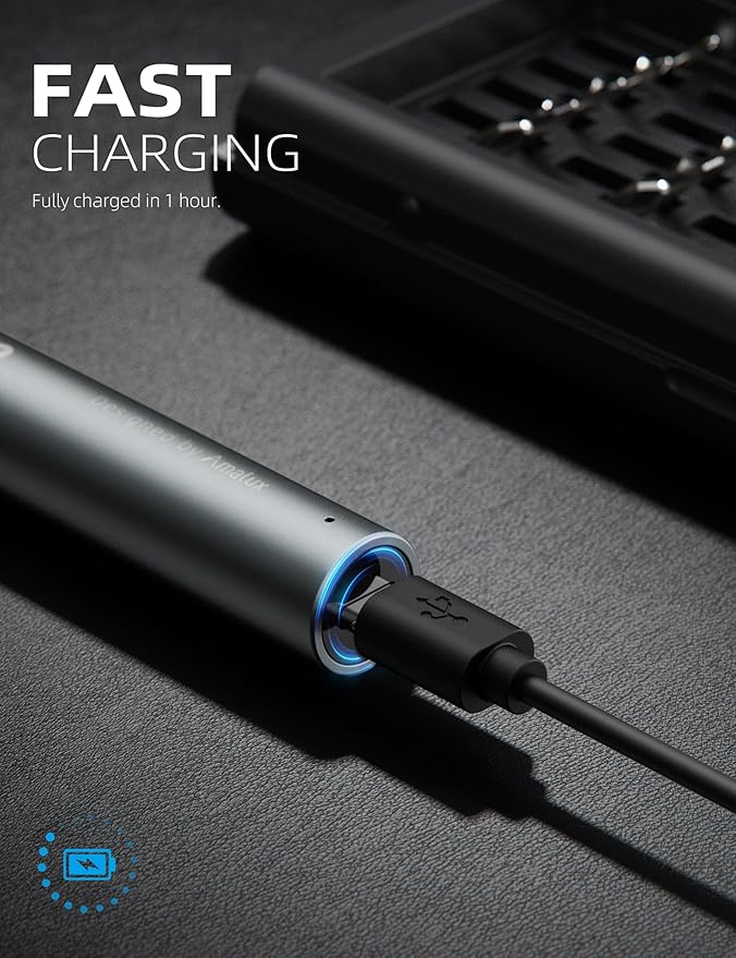 - Cordless Screwdriver Set with Long-lasting Rechargeable Battery:The durable rechargeable battery handles up to 300 screws per charge, with a full charge achieved in about 1 hour via the USB Type-C port. The powerful motor, with a maximum speed of 200 RPM, makes screwing and unscrewing tasks quick and efficient.