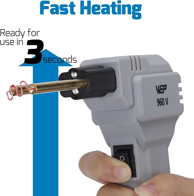 - Great Repair Tool: WEP 960-V grey plastic welder is great for repairing cracks in ABS plastics such as car bumper, plastic gas tank, car dashboard and more. The hot staples gets heated rapidly when you press the activation button, and you can embed the staples into plastic cracks to join the two broken pieces. Once done joining, pull to separate, and cut away the excess staple. Plastic welding is easy as that!