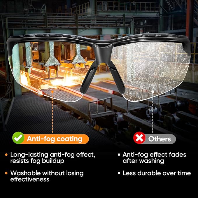 - [ANTI-FOG & UV PROTECTION] Equipped with scratch-resistant, anti-fog properties, these safety goggles utilize professional anti-fog coatings, maintaining clarity in diverse environments. Moreover, they effectively block 99.9% of harmful UV rays.