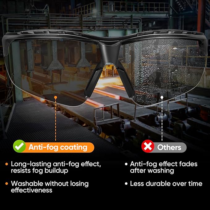 - [ANTI-FOG & UV PROTECTION] Equipped with scratch-resistant, anti-fog properties, these safety goggles utilize professional anti-fog coatings, maintaining clarity in diverse environments. Moreover, they effectively block 99.9% of harmful UV rays.