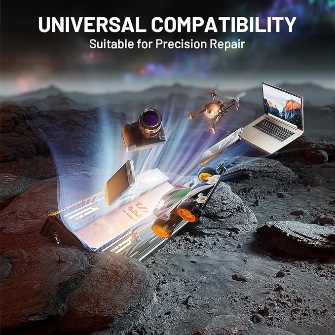 - 【160 Bits +8 Types Fix Tools】It includes 160 precision CR-V steel screw bits, which are corrosion-resistant, strong, and durable. Additionally, it features 4 long S2 steel bits for enhanced performance. The kit also offers 8 electronic maintenance tools, including an opening pick, ESD tweezers, pry bar, extension shaft, and suction handle. It's compatible with most electronic devices, including cell phones, laptops, Switch, and cameras.
