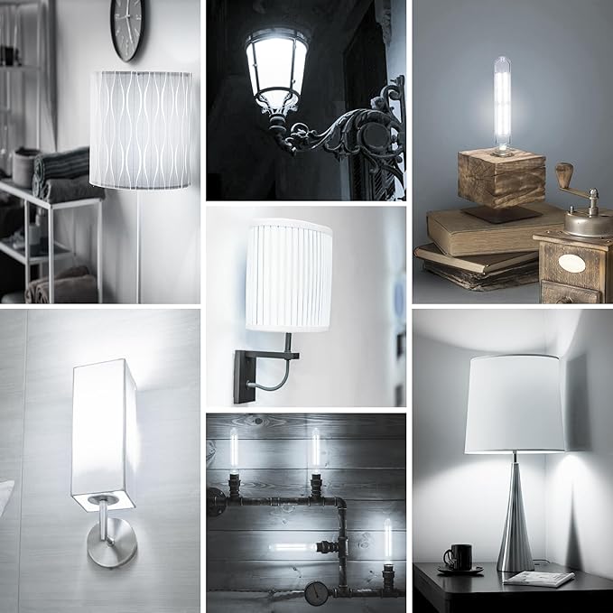 - Retro & Safe: With edison light bulb vintage design, tubular shape clear glass with high transmittance, CRI≥85, 360°beam angle. The e26 bulb light is UL listed (#E476884) and ensure the safe and reliable use of the product