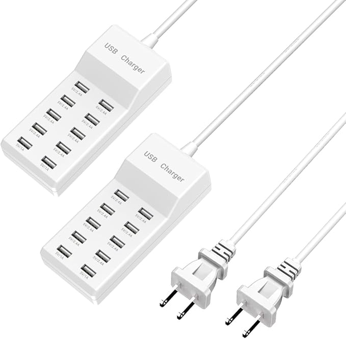 Charging Station - 10-Port USB Charging Hub, Smart Multi-Port Charger, 70.8-Inch Extension Cable, Compatible with Various Devices, Phones, Cameras, Bluetooth Headsets, Tablets, etc. (2 Piece)
