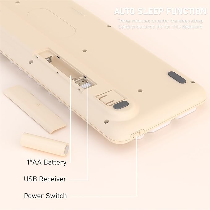 - ABOUT CONNECTION: The keyboard uses 2.4GHZ wireless technology to provide a stable connection, and the working distance is 10m(33ft). If the connection is unsuccessful, please hold down “FN” + “~” to pair the keyboard with your device