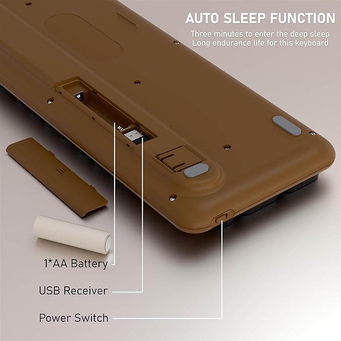 - LONG TIME OPERATION: Separate ON/OFF switch and auto sleep mode design (click any key to wake up) for power saving. A Wireless Bluetooth keyboard requires a 1*AA battery (not included in the package)