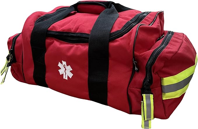 Kemp USA Maxi Trauma Bag - Large First Aid Kit for EMT First Responders - Water Resistant 600D Nylon - Buckle Closure with Adjustable Strap & Reflective Trim - Red