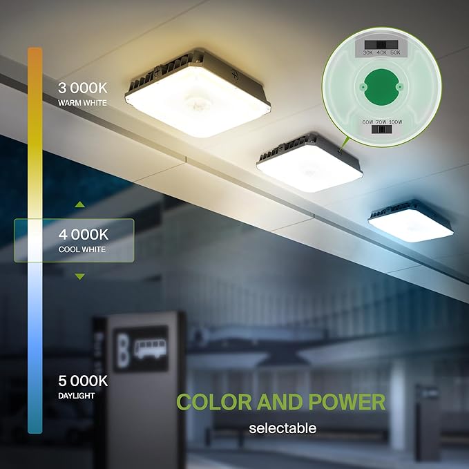 - ✅ Feature – 【1】Choose either a 3000K warm white, 4000K cool white or 5000K daylight color temperature.【2】Change the power between 60W-70W-100W with a simple switch