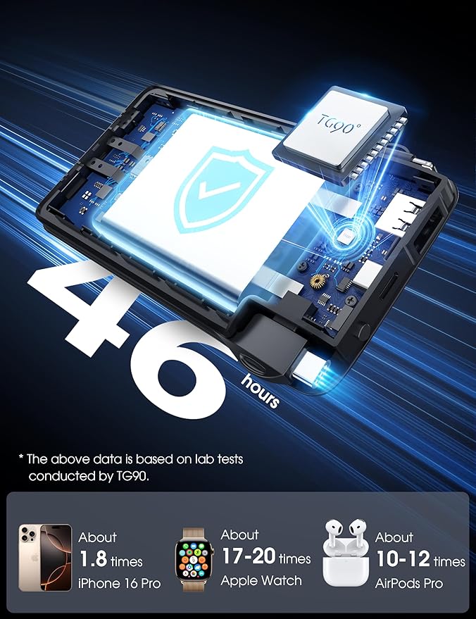 - Universal Compatibility: There are 2ports and 2cables built-in battery pack, widely compatible with 16/15/14/13/16Pro/15Pro/14Pro/16Pro Max/15Pro Max, etc, and most Android phones