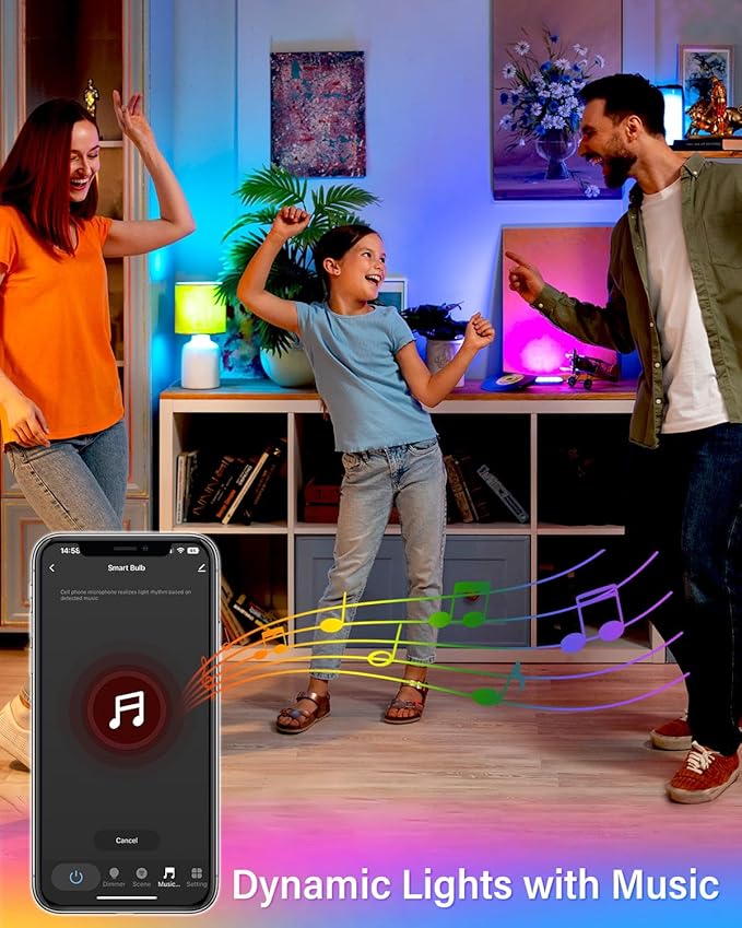 - Dimmable & Music - Adjust the brightness of the light bulb from 10% to 100% to create the perfect lighting for any occasion. Also with music and timer function, you never have to worry whether you've left any energy saving light bulbs on.