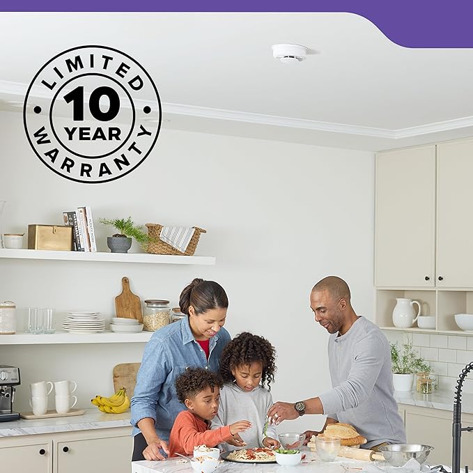 - 10-YEAR WARRANTY: Begins when alarm is powered on. If that date is unknown, it should be assumed that alarms should be replaced. (10-yr limited warranty on alarm, not a battery performance claim.)