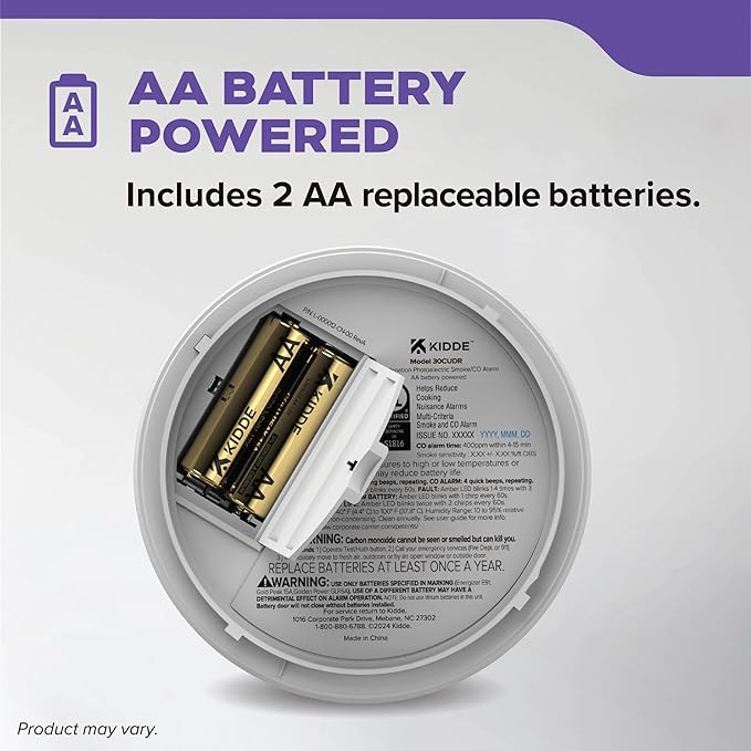 Kidde Smoke & Carbon Monoxide Detector, AA Battery Powered, LED Warning Light Indicators, 30CUDR