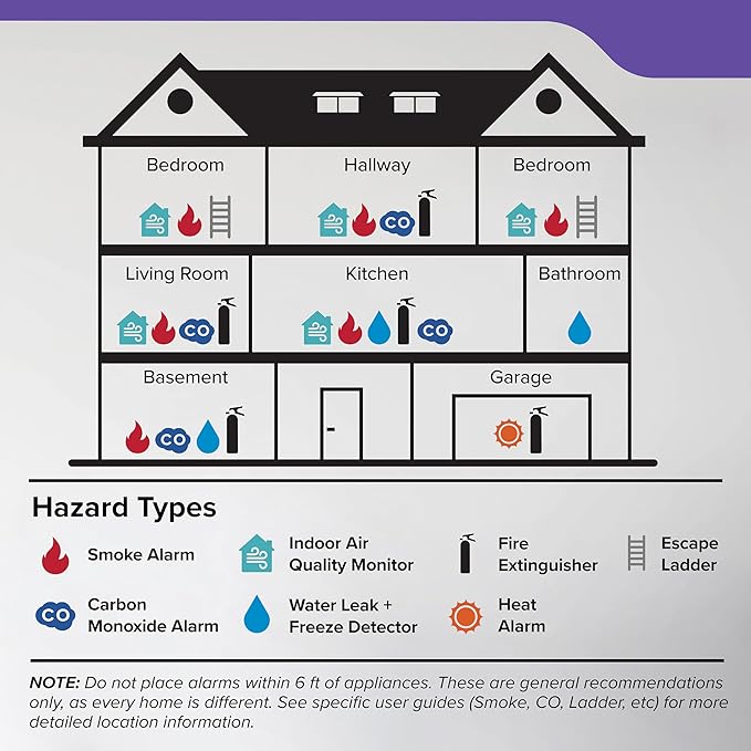- 3 LED NOTIFICATIONS: LED lights indicate alarm status, green = normal operation, amber = operating error, red = smoke or carbon monoxide detected & a loud 85-decibel alarm will sound.
