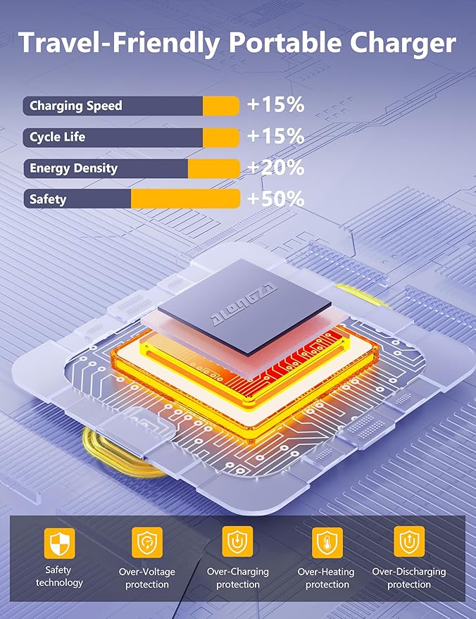 - 10000 mAh Fast Charging Power Bank: With its high capacity, Alongza portable charger power bank can fully charge an iPhone 17 up to two times. Perfect for beach vacation, it meets all your endurance needs. Additionally, it can charge your iPhone from 0% to 50% in just 25 minutes.