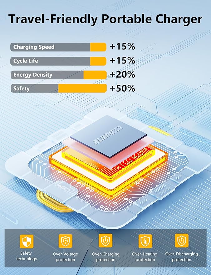 - Safety & Travel-Friendly Portable Charger: Built with a premium battery and a rigorously tested damage-resistant cable, the phone battery bank is designed for long-lasting durability. Its intelligent protection system prevents over-current, overheating, and overcharging. It's safe, reliable, and airline-compliant.