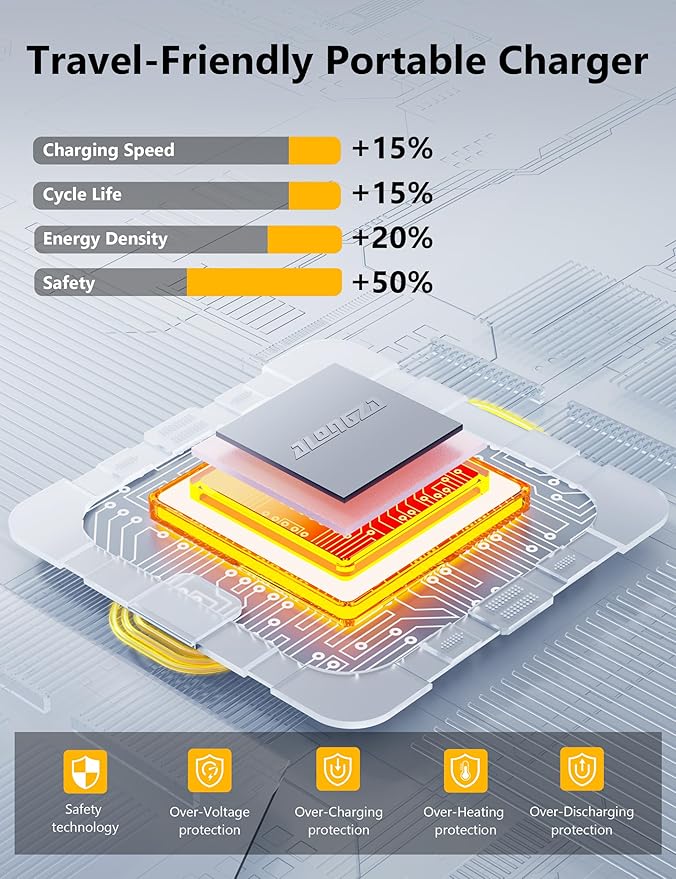 - Safety & Travel-Friendly Portable Charger: Built with a premium battery and a rigorously tested damage-resistant cable, the phone battery bank is designed for long-lasting durability. Its intelligent protection system prevents over-current, overheating, and overcharging. It's safe, reliable, and airline-compliant.