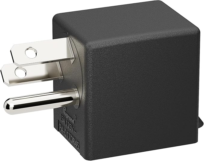 - Plugrand SKU#.: PA-0170R45 15Amp 125Volt Nema 5-15P(USA 3-Prong Male) to 5-15R (3-Prong Female) Right angled ac power adapter,
