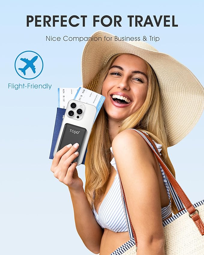 - Ultra-Slim & Portable Design: Packed with a 5000mAh capacity, this power bank is amazingly thin and light, easily fitting into your pocket, wallet, or clutch. Its sleek, credit-card style design makes it the perfect portable charger for travel, work, and everyday use, eliminating the bulk of traditional power banks.