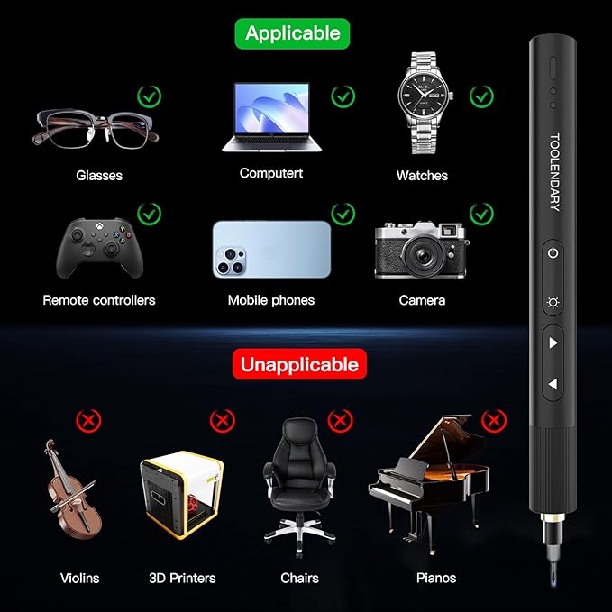 - Power Screwdriver Widely Application: Precision screwdriver sets are suitable for precision work on electronic items, such as laptop, watches, glasses, television, electric skateboard, computers controllers and other small electronics. Specialized mini screwdriver sets that help with repair cellphones or mini tablets.