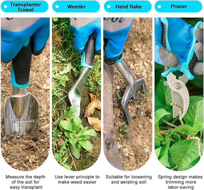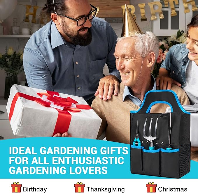 - IDEAL GARDENING GIFTS - Our complete garden tool set, packaged in a beautiful gift box. Excellent gift for garden enthusiasts on various occasions, including birthdays, anniversaries, Valentine's Day, and Christmas. Suitable for friends, spouses, parents, and grandparents with a passion for gardening, the set is thoughtfully designed to meet the needs of gardeners and provide a convenient and efficient gardening experience