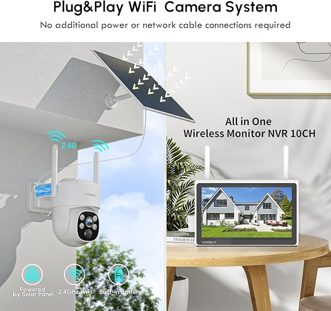 - 【Solar Powered IP Cam& 100% Wire-free】 The VORGUT outdoor solar security camera features a high-capacity built-in battery that ensures continuous power for wireless outdoor security cameras, along with a highly efficient solar panel for optimal energy conversion. Gives you the flexibility to choose the installation location without any concerns about power supply.