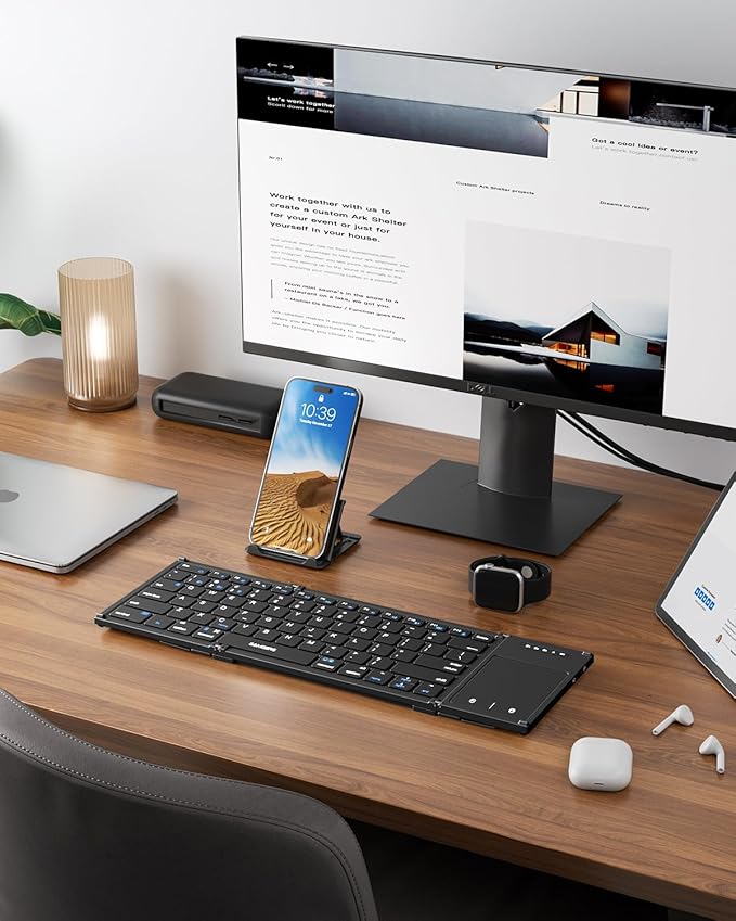 - 【Multi-touch Trackpad Foldable Keyboard】Upgraded sensitive touchpad supports multi-touch and mouse function, allowing you to control your device without a mouse. Built-in rechargeable battery can last up to 48 hours or standby 560 hours after a 2-3 hour charge. One full charge is enough time for your short business trip or vacation! (Note: Type-C charging cable included)