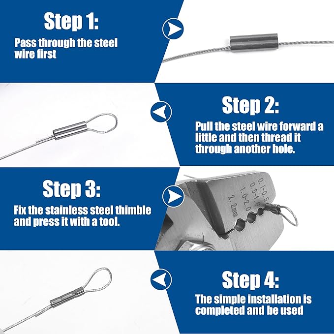 - 【Widely Use】 - Crimping tool coordinate with barrel ferrule can be widely used for wire rope, cable line dog leashes and etc. It can also work well in hanging string lights, clothes, photos, or decorations in your bedrooms, patios, gardens, pergolas