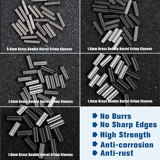 - 【300pcs Double Copper Sleeves】- Inside diameter 0.6mm to 1.8mm,5 size mix and 60pcs for each size,these sleeves are made of quality black nickel copper