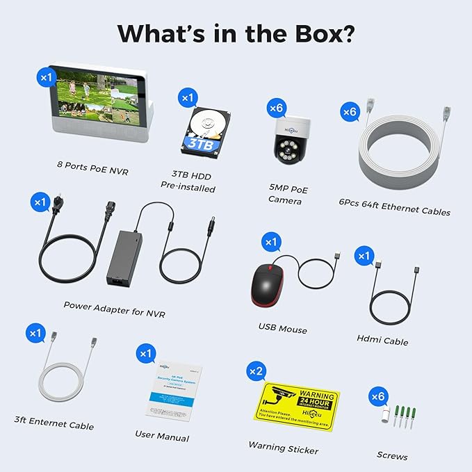 【12’’ Monitor + Human Tracking】Hiseeu 4K PoE Security Camera System, 6Pcs 5MP PoE PTZ Security Cameras, All-in-One Monitor, 2-Way Audio, Remote Access, 8MP 16 Channel P oE NVR, Home CCTV Surveillance