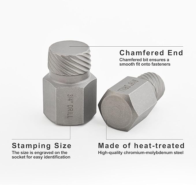 - 【MULTISPLINE HAND TOOLS】 Designed to quickly and efficiently remove broken screws, bolts, threaded parts, pins and pipes, these aggressive multi-spline teeth tools are designed with a spiral design for extra gripping power and faster threading. Built for bolt pulling, extraction, drilling, spline extracting, and other socket and tools pulling