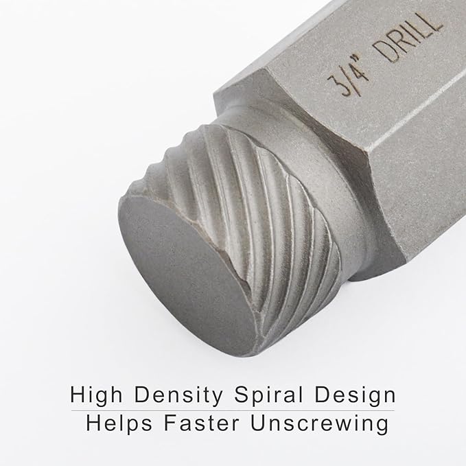 - 【HEX-HEAD AND SPIRAL DESIGN】 As versatile tools, the broken screw and bolts removers feature a hex head to make universal, for unlimited and timely scenarios application. The left spiral design is the solution to ease fastening process and give more control to the professional or DIYs user