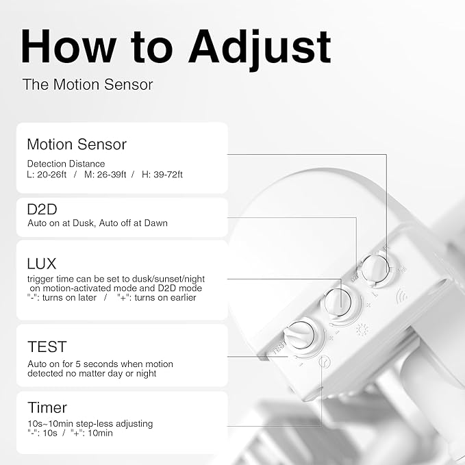 - Automatic Security: Built-in PIR motion sensor detects movement within 0-75 feet and automatically turns lights on for added safety and protection