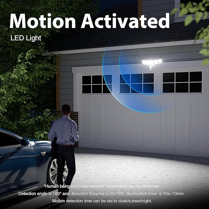 - Bright Lighting: 5 high-powered LED flood lights provide wide-angle 120 W total illumination for excellent visibility around your property