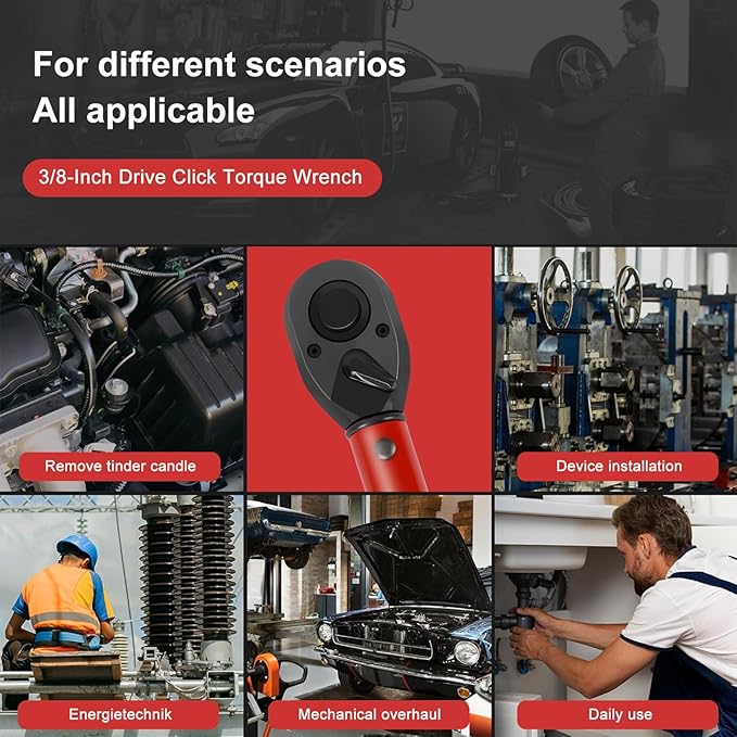 - Heavy Duty and Durable Torque Wrench:The torque wrench 3/8 drive ratchet head made from heat-treated Chrome Vanadium alloy steel for a non-slip, and corrosion-resistant. The Nm and FT-LB double scales use laser technology, which is clear and easy to read, not easy to wear, and suitable for most applications
