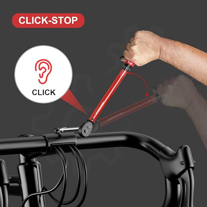 - 3.Easy to use Motorcycle Torque Wrench: When the adjustable torque wrench set reaches the preset torque value, the torque wrench will make a "click" sound, which you can hear or feel, reminding you to stop applying force, so as not to damage your items due to excessive torque. When not in use, please adjust the wrench to the minimum torque value to prolong the service life of the torque wrench