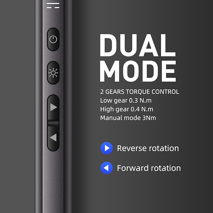 - Digital display & LED Lighting: An upgraded version with a digital display that gives you a clear view of gear and battery life. The electric screwdriver is equipped with LED lighting, which helps you easily find the screw holes in low-light environments, improving work efficiency.