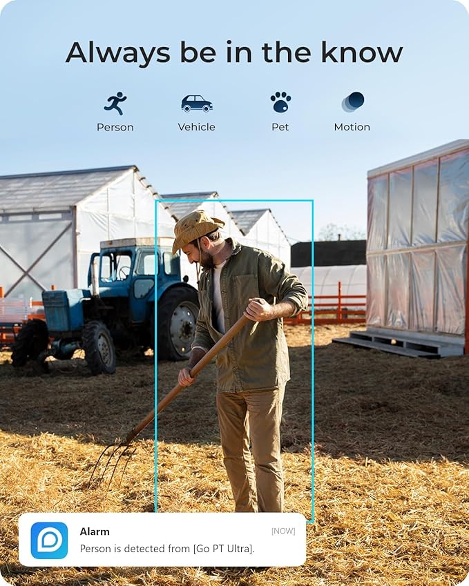 - Various Smarter Features: The smart camera with advanced detection technologies can analyze the person, vehicle, and pet shapes, and enables you to customize the motion zone to focus on the areas that matter to you. And you’ll get instant and accurate alerts when motion is detected.