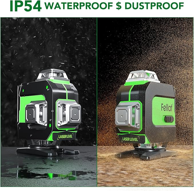 - 【Laser Level 4x360° Self Leveling】FELLAT Laser level tools offers 4 * 360° planes for floor and wall mounting, the green laser horizon is 4 times brighter than the red beam and can provide up to 10 feet of working distance for indoor and outdoor use.safety level-Class II, <1mW power output.