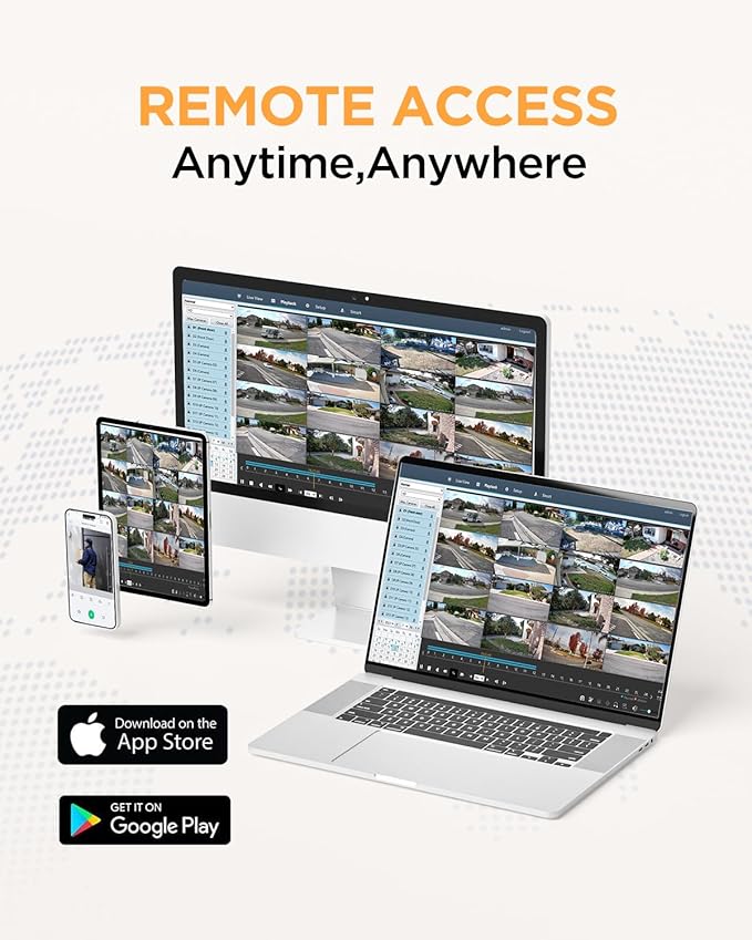 - Remote App Monitoring: GUARD VIEWER mobile App allows you to remote access the NVR system anytime, anywhere. Professional and user-friendly functions, such as live viewing, playback,push notifications.