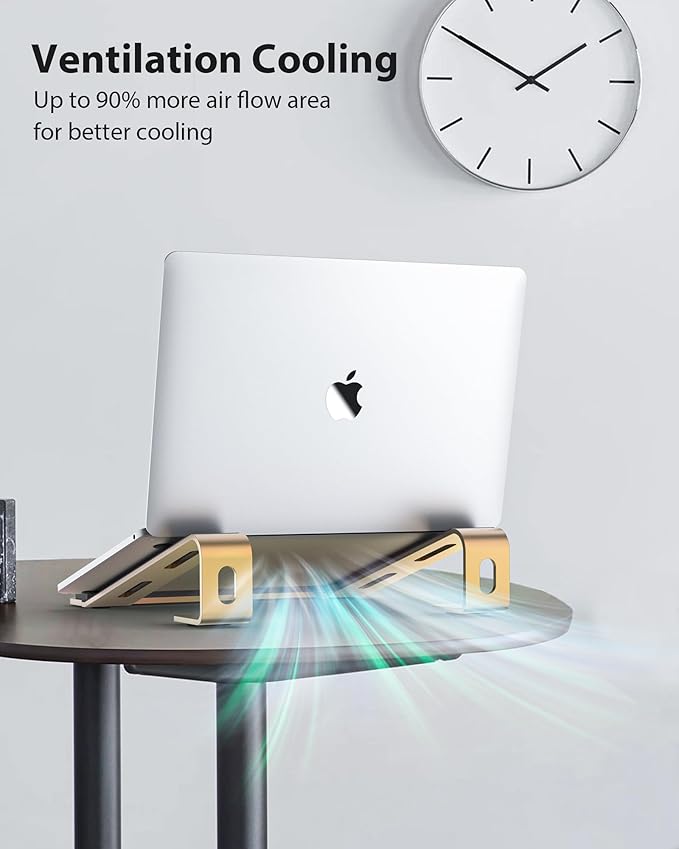 NTMY Laptop Stand for Desk With Wrist Support Pad, Aluminum Computer Stand, Ventilated Ergonomic for MacBook/HP/Dell/Acer/Lenovo, 10-17.3'' - Gold