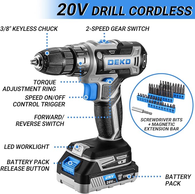 - 【MULTI-FUNCTION DRILLS】The drill tool kit is a perfect power tool set for men and women at home, tools and equipment for heavy duty with diy projects, especially home essentials for house.The drill set is suitable for drilling holes on the wall, wood, metal, plastic boards, also it can be used for furniture assembly, repair or other normal hand made.