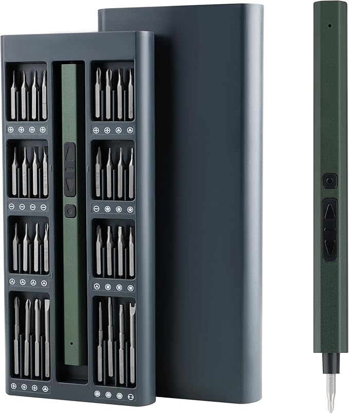 - 【Pop-up Design & Magnetic Storage】Our precision electric screwdriver’s cover adopts push pop-up design for easy opening and closing, convenient storage or transportation.The storage case, screwdriver, and bits are all magnetized, ensuring secure placement without risk of falling off. The additional magnetization area enhances the magnetic properties of the screwdriver and drill bits upon contact.