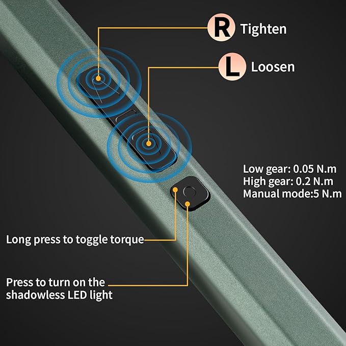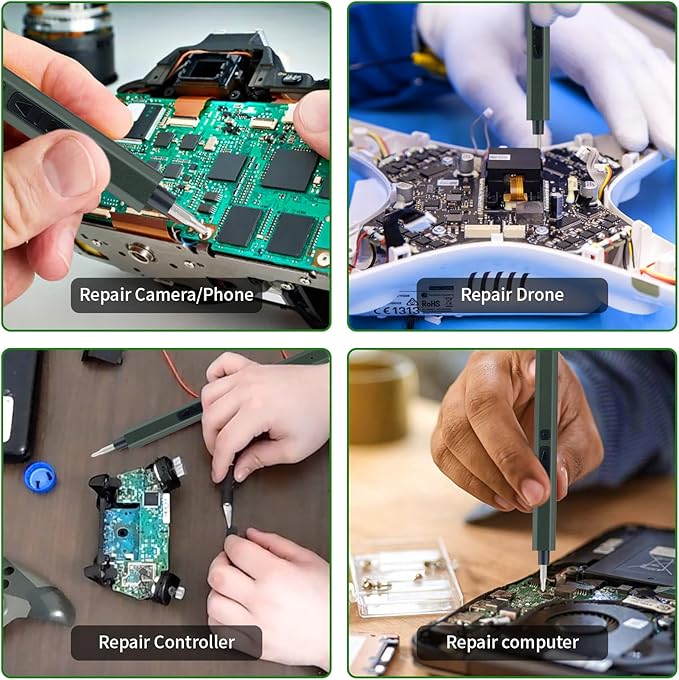 - 【2 Torque Settings】This small screwdriver has a high and low electric torque of 0.15/0.05N.m and a manual torque of 5N.m, the rotate speed is 200r/min. The forward and reverse buttons on the power screwdriver are clearly labeled for easy identification. Ideal for cameras, phone, drone, controller, game console, tablet computers, watches, etc.
