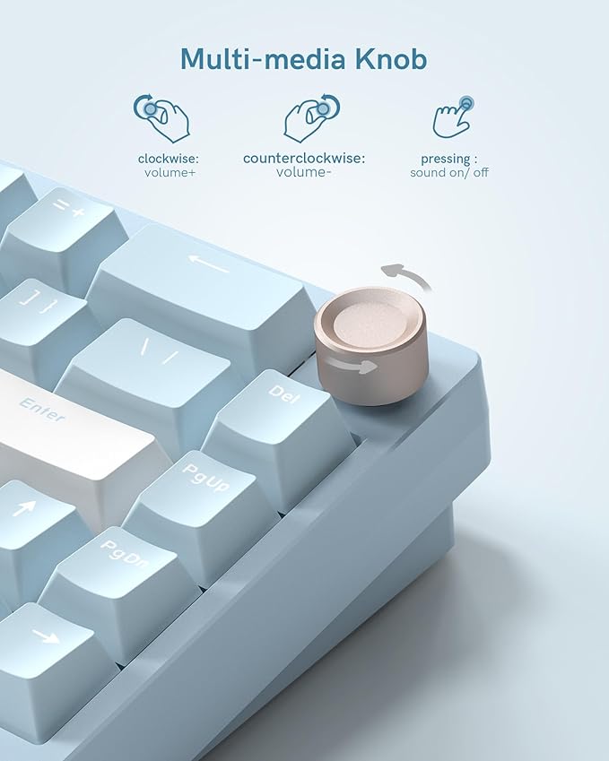 Womier SK65 Wireless Mechanical Gaming Keyboard with Knob, 60 Percent Creamy Aluminium Keyboard for PC, Bluetooth 5.0/2.4GHz/USB-C Wired, Hot Swappable Custom Lineaner Switch, RGB Backlit, Blue