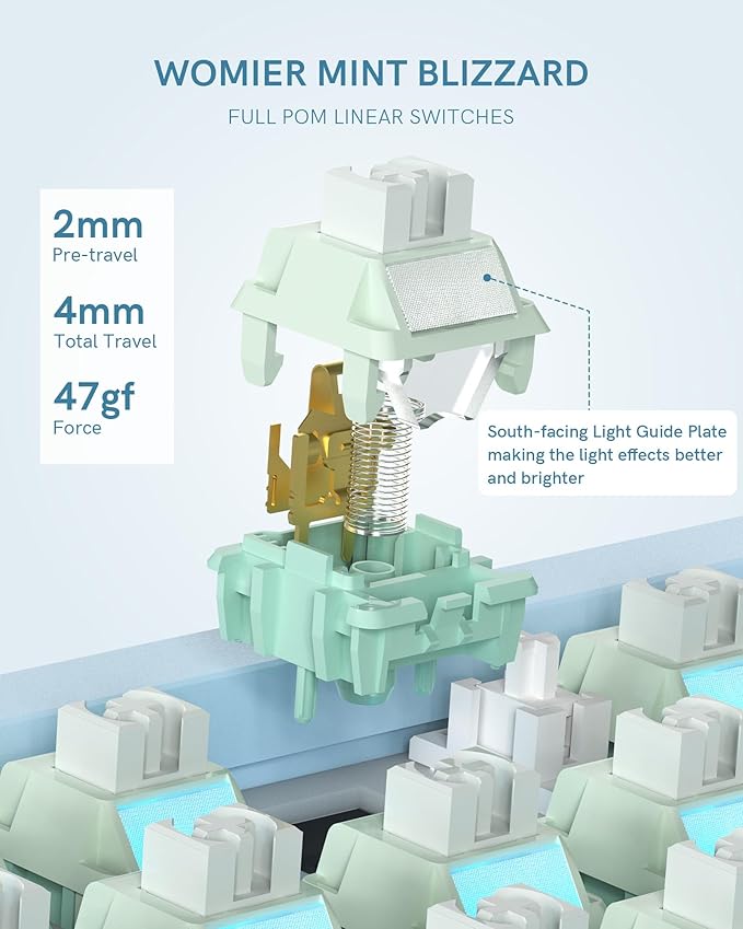 - 【Gasket Mount & Sound Absorbing】Foams- SK65 mechanical keyboard takes the typing experience to a new level. Coupled with a gasket mount, multi-layer sound absorbing foam, and single key slotting flex-cut PCB plate, making the keyboard flex to reduce typing fatigue. We use thick PBT keycaps, oil resistant and wear resistant. Plus our Womier custom linear switches gives a very confident bottoming-out clack to each keystroke, with zero echo or reverberation due to their factory-lubed POM base. Widely applied in gaming or office