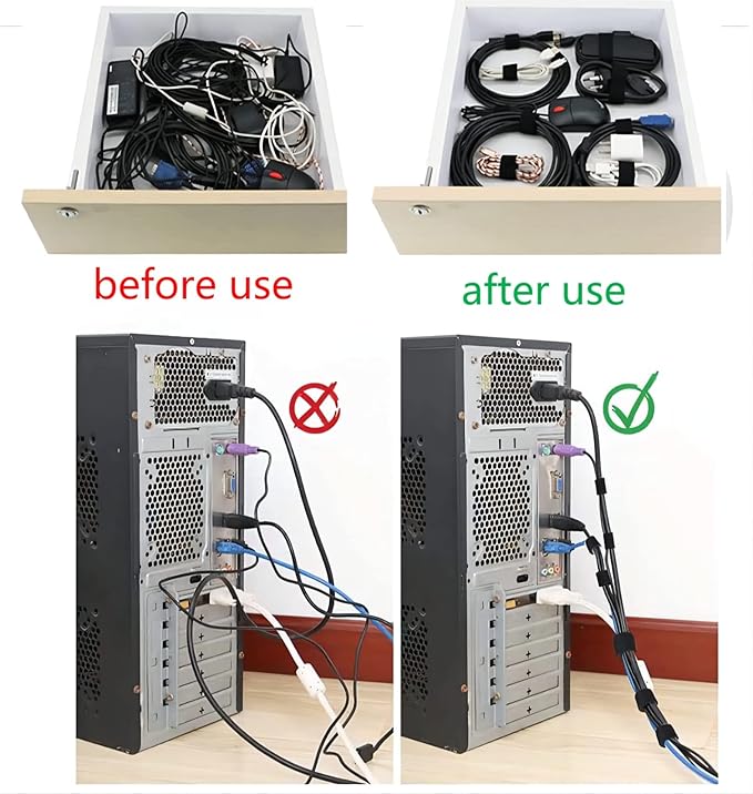 - ๐ฒMULTI-FUNCTION:This self gripping cable ties can be used in many places. When your computer cables are very messy, you can use it to organize the computer cables. Similarly, it can also be used in the study, office, living room.It can also be widely used in the storage of data cables, power cables, network cables, etc., as well as the bundling of gardening trees, flowers, and potted plants, etc. , very practical.