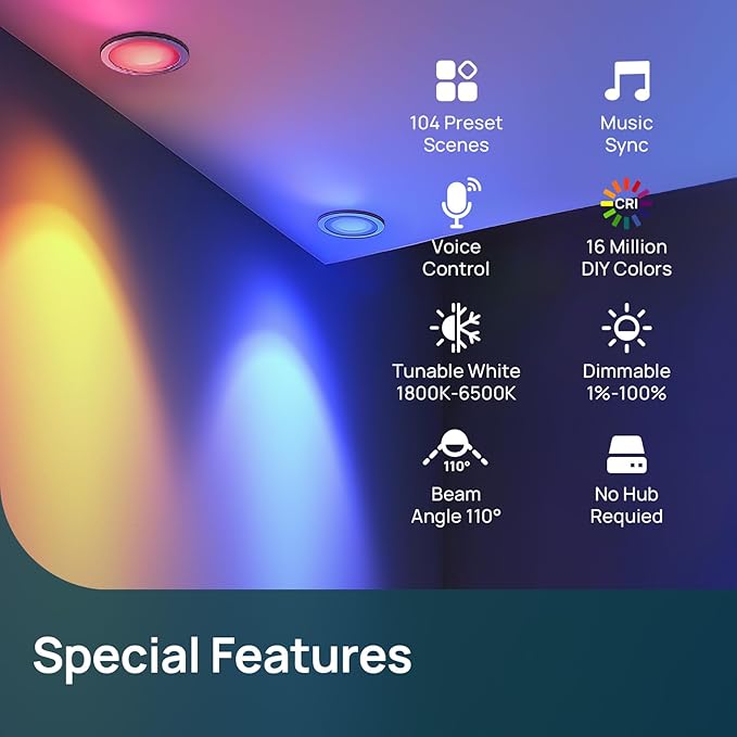 - 【Customize Schedules & Scenes】Set different schedule times to turn on/off the flood light bulbs according to your daily routines. Various preset features like Bonfire, Party, Sleeping, Reading, etc. and scenes are available to meet your demand. The BR30 color lights bulbs illuminate 2700k warm white light, CRI > 90 can effectively restore the true color of the object, comfortable your eyes.