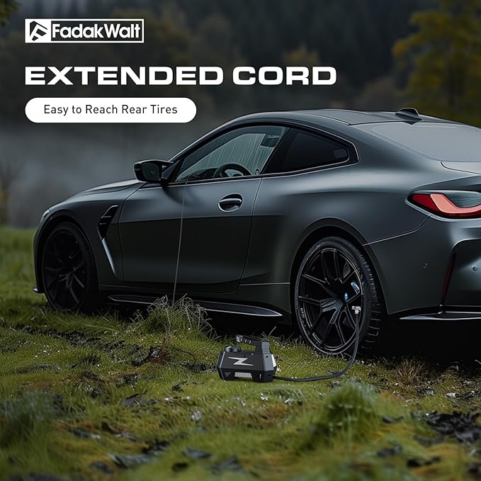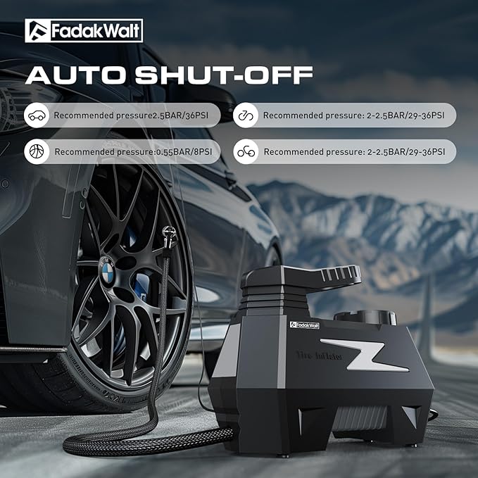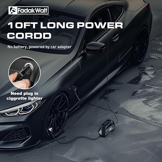- Safe & Reliable: The Fadakwalt car air pump does not come with a built-in battery, reducing the risk of overheating and fire in hot weather. It is powered directly by your vehicle, ensuring a safer and more reliable inflation option, giving you peace of mind on long drives or in emergency situations.