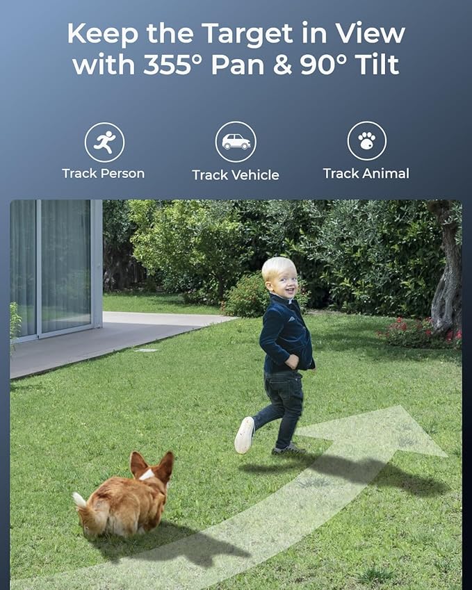 - SMART DETECTION & DUAL-IMAGE AUTO TRACKING: This advanced feature combines a 355° pan and 90° tilt to provide comprehensive, full-range tracking. Rest assured knowing you won''t lose sight of any moving subject, whether it's a person approaching your property, a vehicle entering your driveway, or an dangerous animal passing by. The dual lenses work in harmony to deliver both wide and distant views, allowing you to monitor and track intruders in full-view images and capture fine details simultaneously.