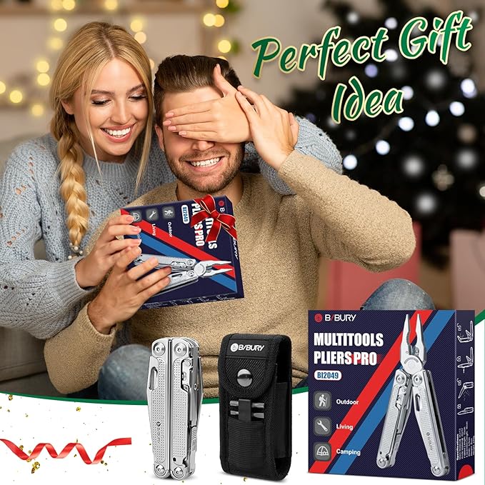- PORTABLE WITH MULTITOOL SHEATH: Its compact folding design makes it pocket-sized for easy carrying for outdoor activities. BIBURY BI2049 multitool Pro comes with a durable nylon sheath for carrying, featuring a front pocket for screwdriver bits and side pockets for holding saw blades. With its lightweight, folded design, you can put this multifunctional tool in your car or bag for outdoor survival, camping, hunting